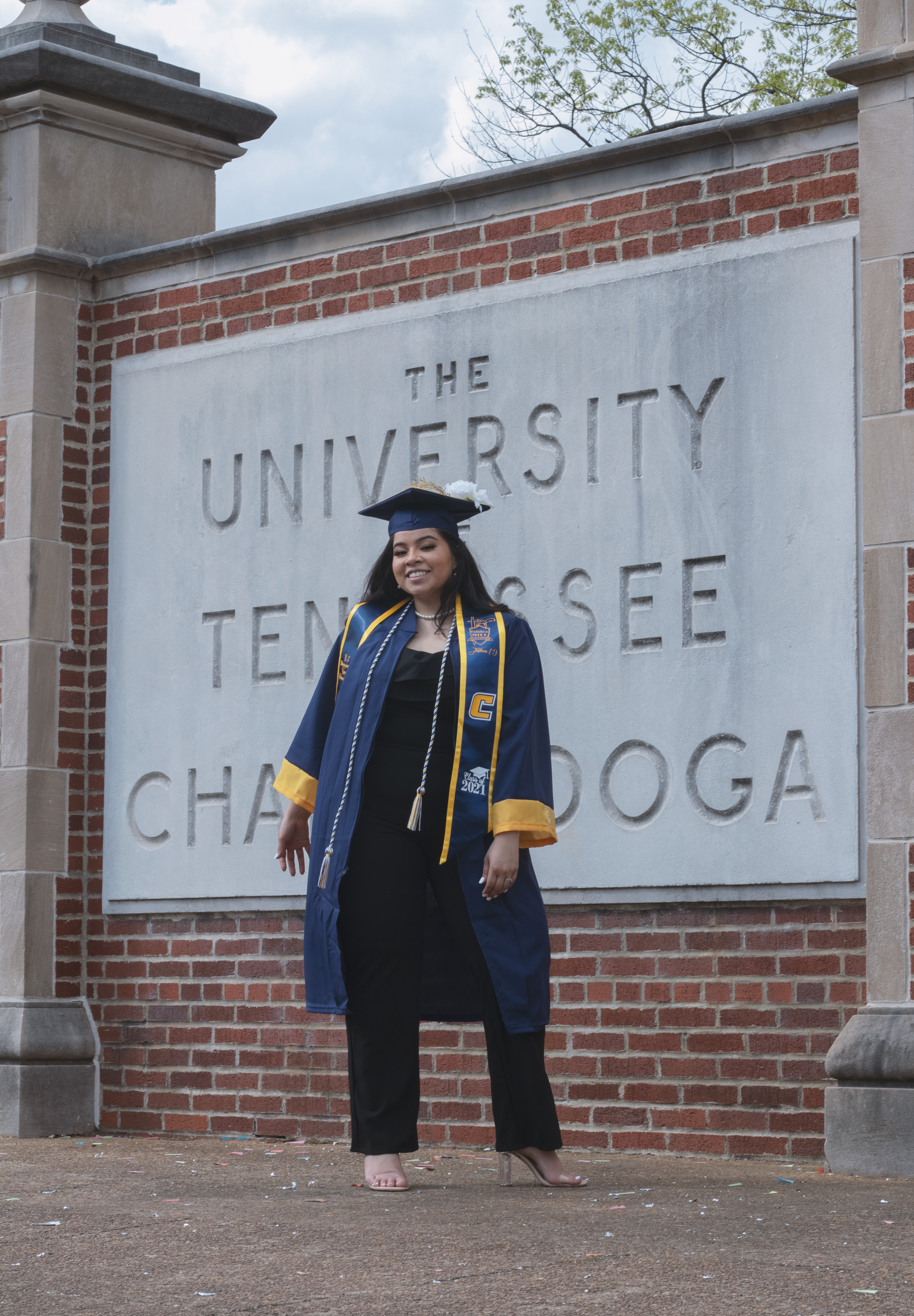 Graduation is a huge milestone for many first generation students. Rachel who graduated a year early left her mark at UTC by being initiated into a sorority, juggling internships and club meetings.