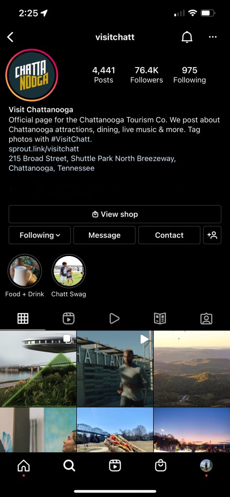 My recent role at Chattanooga Tourism Co. I was their Content Specialist and managed several social media accounts. The position was fairly new when I started in 2022, and I wasn’t given any direction.